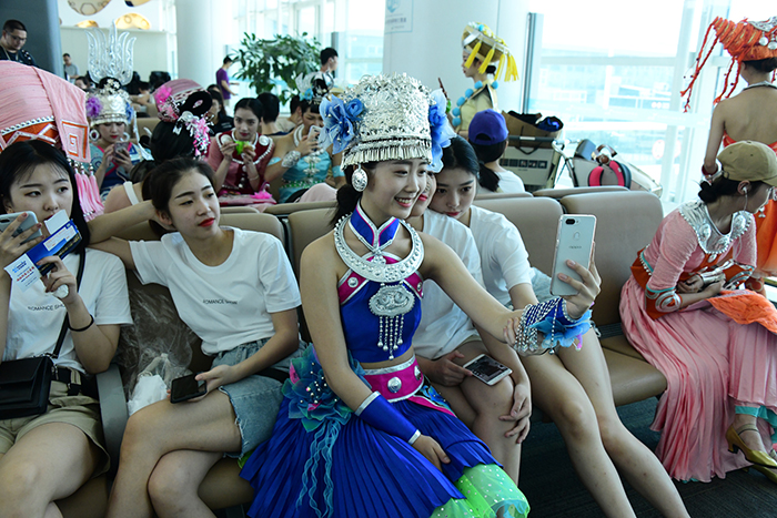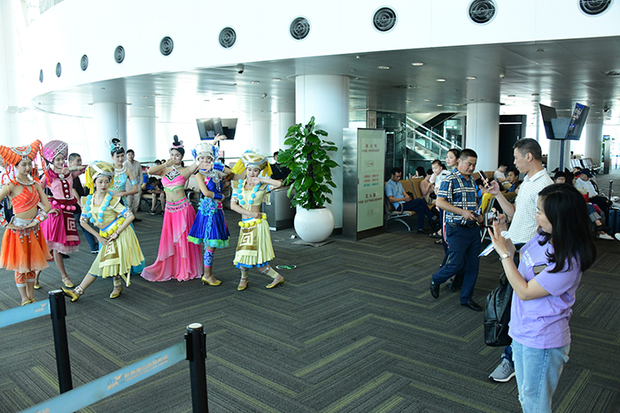 6月25日,在杭州蕭山國(guó)際機(jī)場(chǎng)的候機(jī)廳與杭州飛往桂林的航班上,上演了一場(chǎng)民族風(fēng)的快閃活動(dòng)。