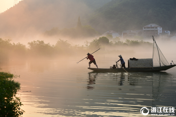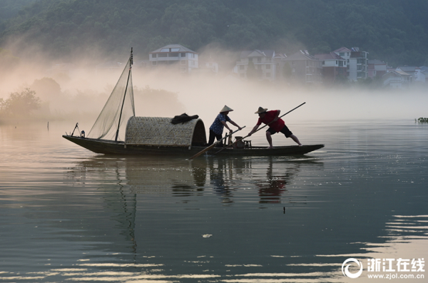 7月29日清晨,在建德市下涯生態(tài)濕地,一批江蘇、福建、安徽等地的攝影愛好者架著長槍短炮在拍攝江霧中漁家生活的場景。每逢盛夏時節(jié),新安江畔形成如夢似幻的江霧奇觀,與下涯濕地形成一道獨特的生態(tài)自然景觀,每年吸引國內(nèi)外數(shù)以萬計的游客和攝影愛好者前來旅游觀光,采風(fēng)拍攝,避暑度假。(拍友 寧文武 攝)