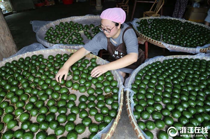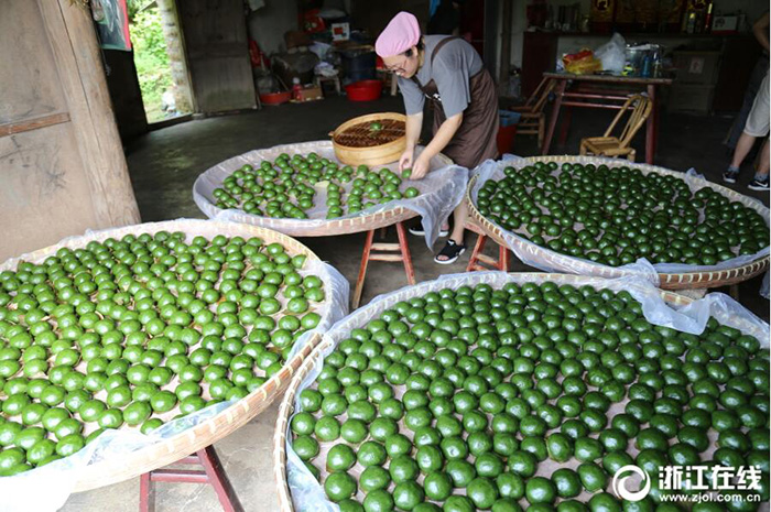 8月11日,在湖州市吳興區(qū)埭溪鎮(zhèn)大沖村鐘妍家中,彌漫著青圓子濃郁的清香。