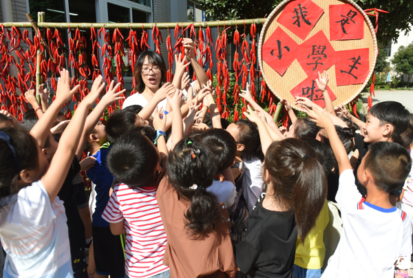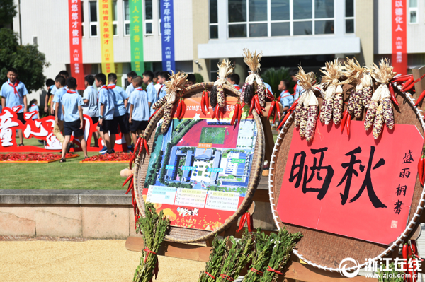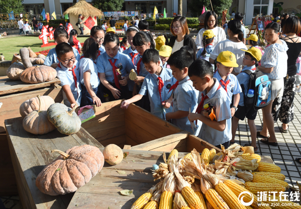 9月2日,杭州富陽(yáng)區(qū)富春第七小學(xué)別出心裁,用“曬秋”的形式迎接新學(xué)期開學(xué)。菁菁校園里,果實(shí)累累,隨處可見用紅辣椒、大蒜、玉米、南瓜等果實(shí)拼成的圖案,這些圖形特別醒目,創(chuàng)意感十足。這些果實(shí)都是由學(xué)生、老師和家長(zhǎng)在富春七小開心農(nóng)場(chǎng)親手栽種收獲的。學(xué)校通過(guò)“曬秋”的形式,既曬出了大家的喜悅,也讓孩子們懂得勞動(dòng)的意義。