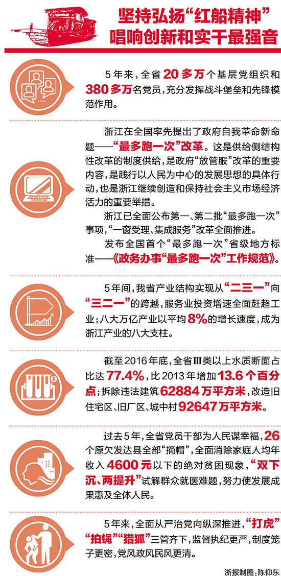 改革不停頓、開(kāi)放不止步!凹t船精神”激勵(lì)浙江兒女把握發(fā)展這一時(shí)代主題和黨執(zhí)政興國(guó)的第一要?jiǎng)?wù),大膽探索,創(chuàng)新創(chuàng)業(yè)。
