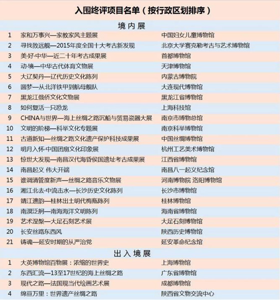 按照推介活動計(jì)劃,將組織本屆“十大精品”入圍終評項(xiàng)目網(wǎng)上展示和公眾留言、評議,終評名單將于“5·18國際博物館日”公布。