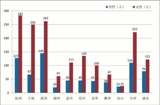截至2017年末,全省共有百歲老人2379人,比上年同期增加72人。其中:男性742人,占總數(shù)的31.19%;女性1637人,占總數(shù)的68.81%。杭州市百歲老人數(shù)居全省之首,有409人;其次為溫州市和臺(tái)州市,各有407人和332人。全省最年長(zhǎng)者是寧波市海曙區(qū)111歲的施杏月(女)老人。
