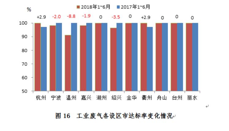 各設(shè)區(qū)市中,溫州、衢州和麗水達標率持平;杭州、紹興和舟山有所上升,其余各市均有所下降。