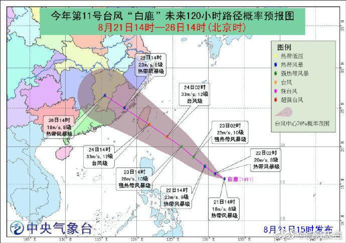 22日8時(shí),第11號臺風(fēng)“白鹿”中心位于臺灣省花蓮市東南方向約1230公里。預(yù)計(jì)將以每小時(shí)18公里左右的速度向西北方向移動,逐漸向臺灣東部沿?拷。
