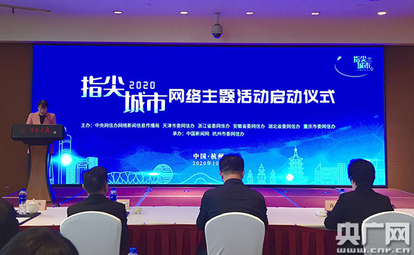 央廣網杭州10月21日消息(記者 王海鵬)10月21日,由中央網信辦網絡新聞信息傳播局聯(lián)合天津、浙江、安徽、湖北、重慶五省市網信辦聯(lián)合主辦的“2020·指尖城市”網絡主題活動在浙江杭州啟動。