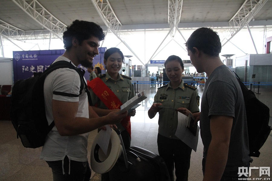 央廣網(wǎng)寧波8月16日消息(記者杜金明 通訊員陳燕)今天(16日),浙江省邊防總隊(duì)寧波機(jī)場(chǎng)邊檢站開(kāi)展了主題為“中國(guó)邊檢·陽(yáng)光國(guó)門(mén)”的邊檢服務(wù)品牌宣傳活動(dòng)。同時(shí),這也是國(guó)家移民局成立后的第一次中國(guó)邊檢服務(wù)品牌宣傳活動(dòng)。