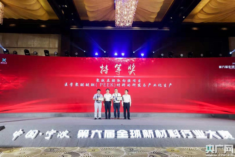 央廣網(wǎng)寧波9月25日消息(記者杜金明 通訊員張明明 王賢杰) 25日下午,中國(guó)·寧波第六屆全球新材料行業(yè)大賽總決賽在寧波落幕,聚酰亞胺取向膜項(xiàng)目和醫(yī)學(xué)聚醚醚酮( PEEK)材料的研發(fā)與產(chǎn)業(yè)化生產(chǎn)項(xiàng)目獲得特等獎(jiǎng),項(xiàng)目落戶寧波國(guó)家高新區(qū)新材料科技城后,將有機(jī)會(huì)獲得最高4000萬元的政策扶持資金。