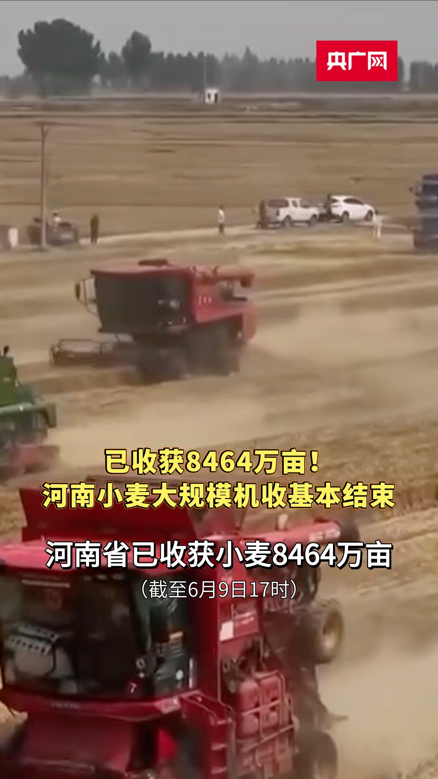已收獲8464萬畝!河南小麥大規(guī)模機收基本結(jié)束