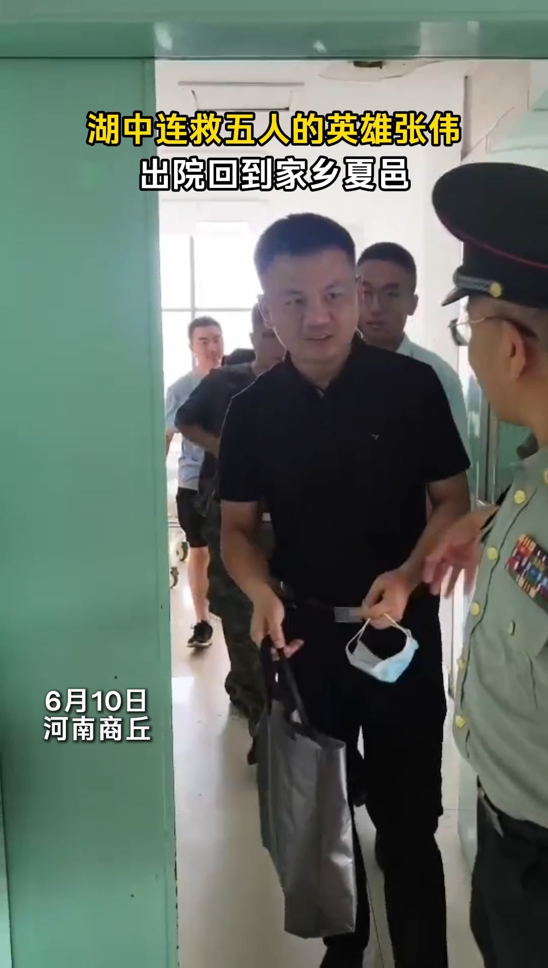 6月6日,河南籍現(xiàn)役軍人張偉在商丘南湖遇到他人落水時,毫不猶豫跳入水中連救4人。在第五次下水前,他知道自己可能再也盡不了孝了,在給母親磕了頭后,又毅然返身跳入湖中,拼盡全力救出第五人。上岸后,他因體力嚴重透支陷入昏迷。6月10日,連救5人的張偉康復出院,回到了商丘市夏邑縣老家。(記者 王勇生 張羲輪 素材來源:商丘融媒)
